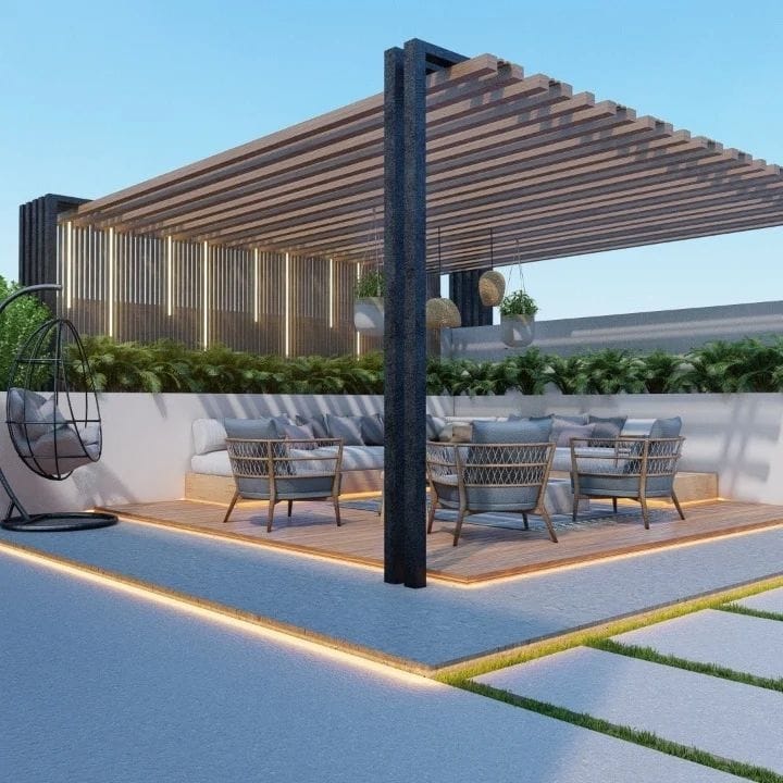 3. تصميم وتنفيذ المظلات والجلسات الخارجية