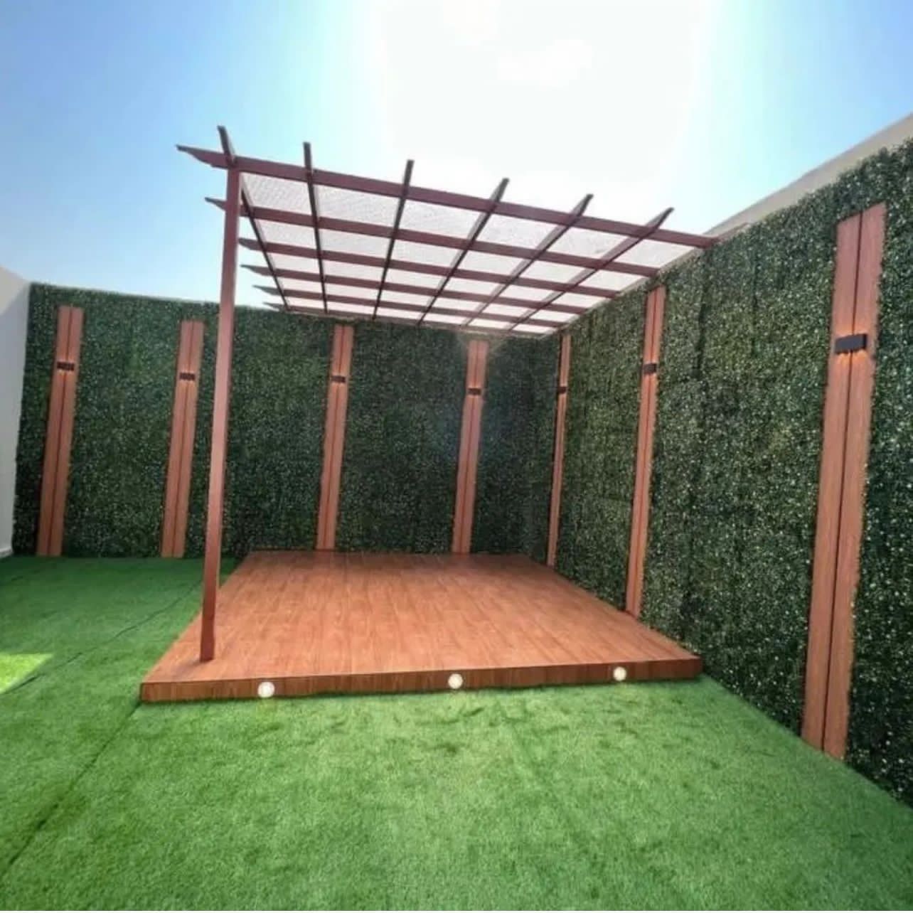 نستخدم خامات متعددة مثل الحديد، والخشب، وPVC، والبولي كربون لتناسب جميع الأذواق والبيئات في أبوظبي والعين، مع ضمان مقاومة عالية لعوامل الحرارة والرطوبة.