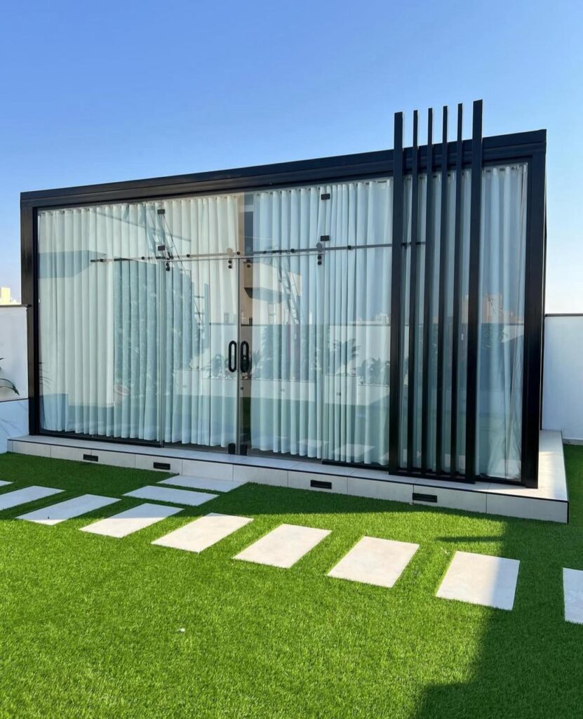 تُناسب الغرف الزجاجية مختلف الاستخدامات، مثل غرف الجلوس الخارجية، والمكاتب المنزلية، وغرف الطعام المطلة على الحديقة، والجلسات الشتوية، مع إمكانية إضافة أنظمة تكييف، وستائر ذكية، وإضاءة مخفية لتوفير أقصى درجات الراحة والفخامة.